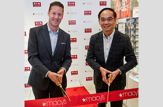 集团于 2016 年 11 月 12 日在著名的美国梅西百货开设周大福珠宝品牌首间在美国的店中店。新店座落于纽约市最热闹的地区之一、亦是梅西百货其中一间最受欢迎的分店─法拉盛梅西百货。该新店面积约 500 平方呎,提供珠宝镶嵌首饰、黄金产品、铂金和 K 金首饰等多元化产品,其中由周大福设计兼分销的 24K 足金首饰更是法拉盛梅西百货前所未有的产品。